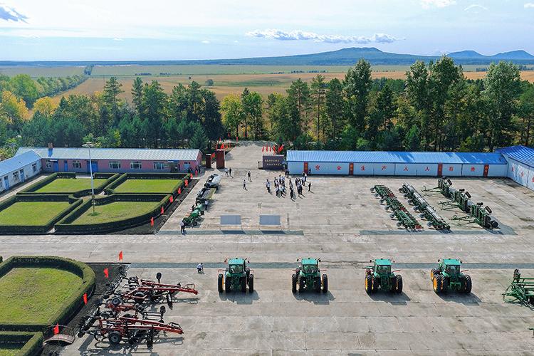 引龍河農(nóng)場(chǎng)構(gòu)建了完善的農(nóng)機(jī)存放與裝備體系,設(shè)有一類(lèi)農(nóng)機(jī)停放場(chǎng) 7 處、二類(lèi)停放場(chǎng) 7 處、臨時(shí)停放場(chǎng) 5 處,總面積 10.8 萬(wàn)平方米,可充分滿(mǎn)足農(nóng)機(jī)存放需求。全場(chǎng)農(nóng)機(jī)總動(dòng)力達(dá) 4.18 萬(wàn)千瓦,155 臺(tái)動(dòng)力機(jī)車(chē)覆蓋“耕、種、管、收”全環(huán)節(jié),485 臺(tái)(套)農(nóng)機(jī)具嚴(yán)格落實(shí)“五凈、四不漏、六封閉、一完好”管護(hù)標(biāo)準(zhǔn)。