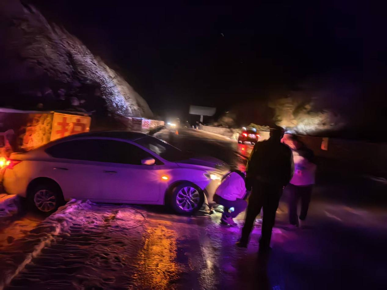 了解情況后,民警立即找來了皮卡車用拖車繩反復嘗試拖拽,經(jīng)過一個小時的拖救,成功將受困車輛成功拖拽到主路。由于天色漸晚,民警建議游客到前方縣內(nèi)進行休息調整。隨后,民警仔細檢查了車輛的輪胎、剎車等關鍵部位,確認車輛無故障后,還耐心向游客講解了 G331 國道夜間行車的注意事項,包括提前查看天氣、控制車速、保持車距以及遇到突發(fā)情況如何正確求助等。