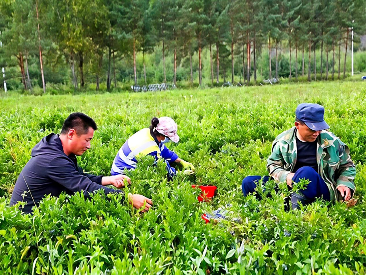 林場(chǎng)工作人員正在采摘藍(lán)莓(張凱強(qiáng) 攝)