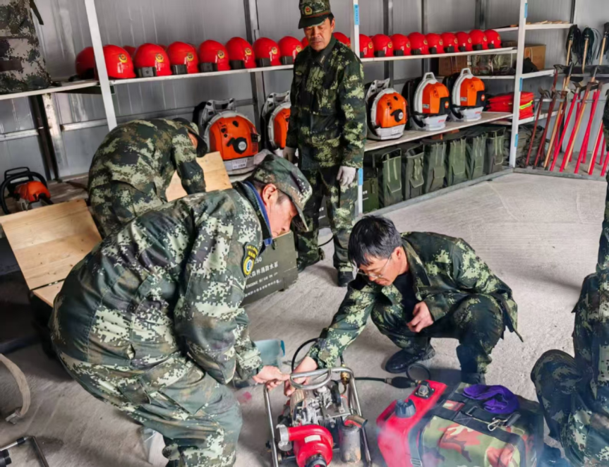 超前部署強基礎(chǔ),筑牢防控“先手棋”。充分利用準備之冬”黃金期,細化完善23項防滅火預案及 26 項工作流程圖,構(gòu)建起層次分明、流程順暢的防控指南。全年開展指揮員、瞭望員、無人機操作等各類培訓25次,覆蓋893名干部職工,實現(xiàn)防控隊伍專業(yè)能力全面提升。同時完成110臺車輛、380臺套滅火機具、241臺套通訊設(shè)備的全面檢修,物資儲備到位率、設(shè)備完好率均達100%。350 人專業(yè)消防大隊、22座瞭望塔、43個管護站等力量精準布防,形成“預案、宣傳、機械、物資、隊伍、人員”六到位的防控格局,為實戰(zhàn)奠定堅實基礎(chǔ)。