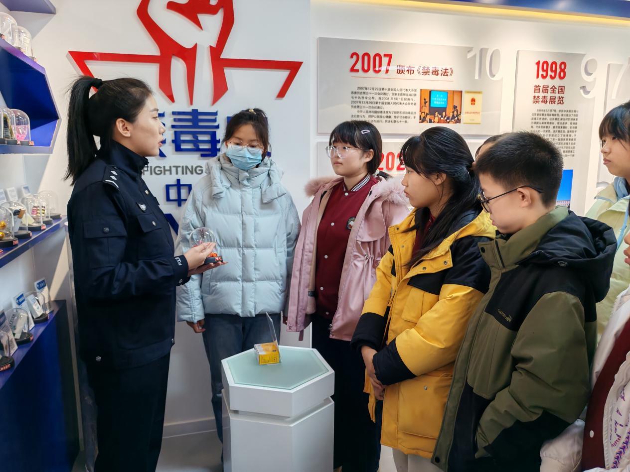 活動(dòng)中,在基地講解員的引導(dǎo)下,師生們?cè)谥袊?guó)禁毒史展區(qū),虎門銷煙的歷史場(chǎng)景、近代禁毒斗爭(zhēng)通過(guò)圖文形式生動(dòng)呈現(xiàn),講解員講述的禁毒先輩故事,讓師生們深刻感悟到禁毒工作的歷史厚重與現(xiàn)實(shí)意義。在仿真毒品展示區(qū),講解員詳細(xì)介紹了傳統(tǒng)毒品、合成毒品及新型毒品的種類、特性與識(shí)別技巧,破解了“看似無(wú)害實(shí)則致命”的毒魔偽裝,幫助師生們練就辨別毒品的“火眼金睛”。