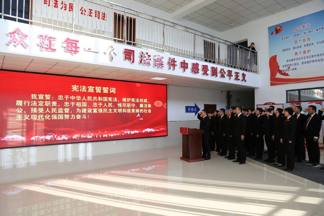 孫長(zhǎng)久院長(zhǎng)左手撫按憲法,舉起右拳,高聲領(lǐng)誓,各位干警莊嚴(yán)宣誓——“我宣誓:忠于中華人民共和國憲法,維護(hù)憲法權(quán)威,履行法定職責(zé),忠于祖國、忠于人民,恪盡職守、廉潔奉公,接受人民監(jiān)督,為建設(shè)富強(qiáng)民主文明和諧美麗的社會(huì)主義現(xiàn)代化強(qiáng)國努力奮斗!”